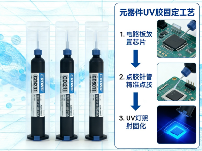 CROWD焊点保护UV胶耐水防水、无污染;耐高温、无溶剂、固化后胶膜高透明、不雾化、无白化、不变黄、